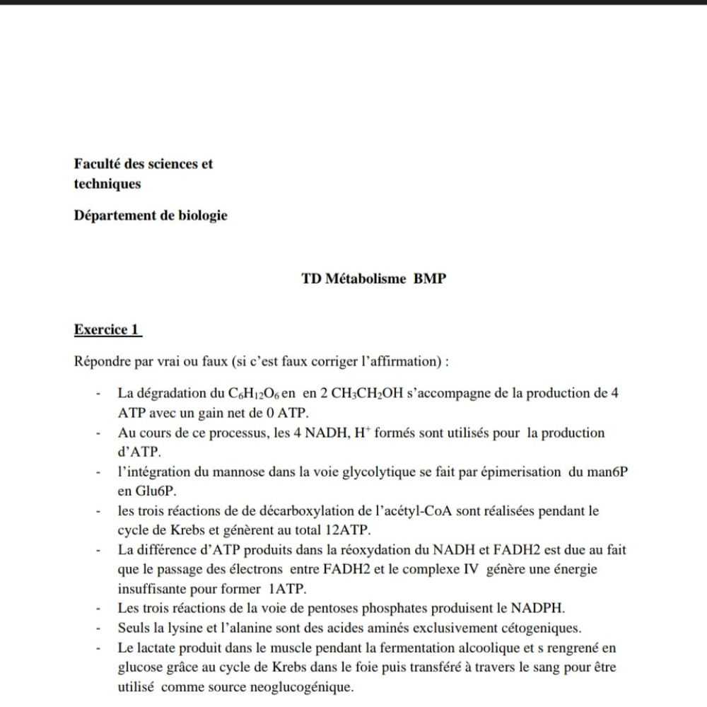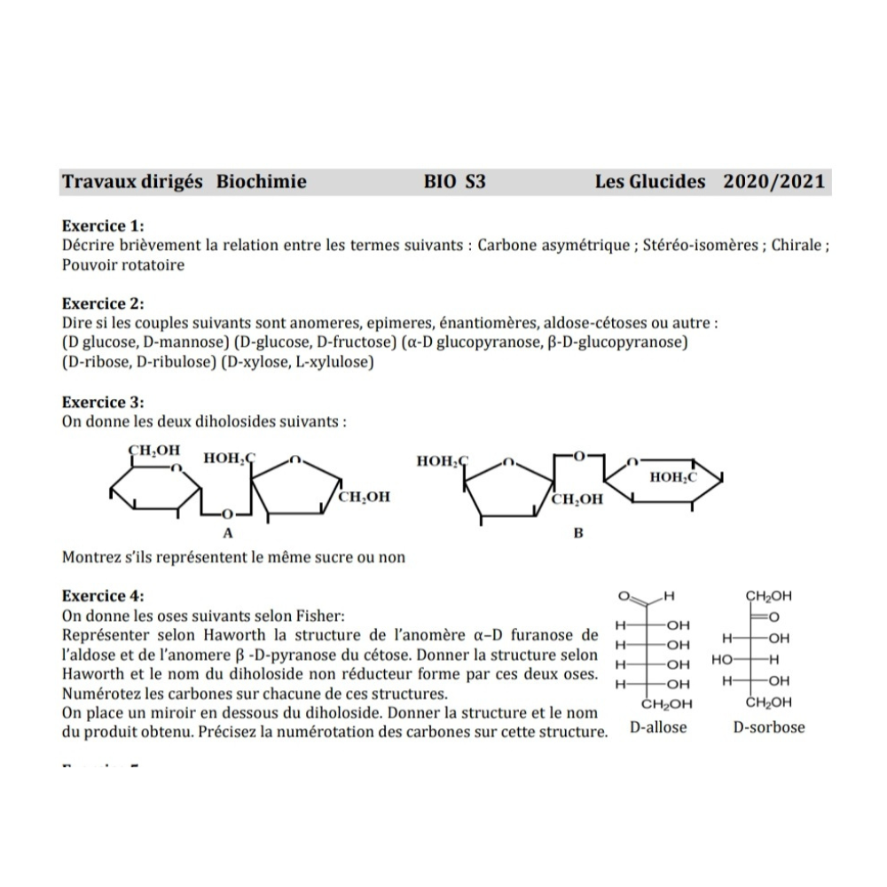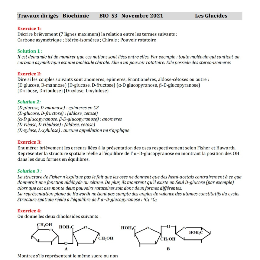 Travaux diriges TD1 biochimie_ Les Glucides TD Techniques Etudes des biomolécules 1 TD metabolisme BMP TD immunologie BMP TD Glucides S3 avec solutions EXOS Genetique des population